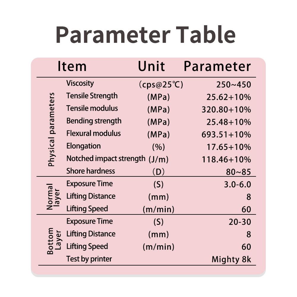 The resin boasts excellent mechanical properties, performing exceptionally well in terms of compression resistance, tensile strength, and wear resistance. Additionally, its good stability ensures that the dentures maintain their performance and shape in various oral environments.