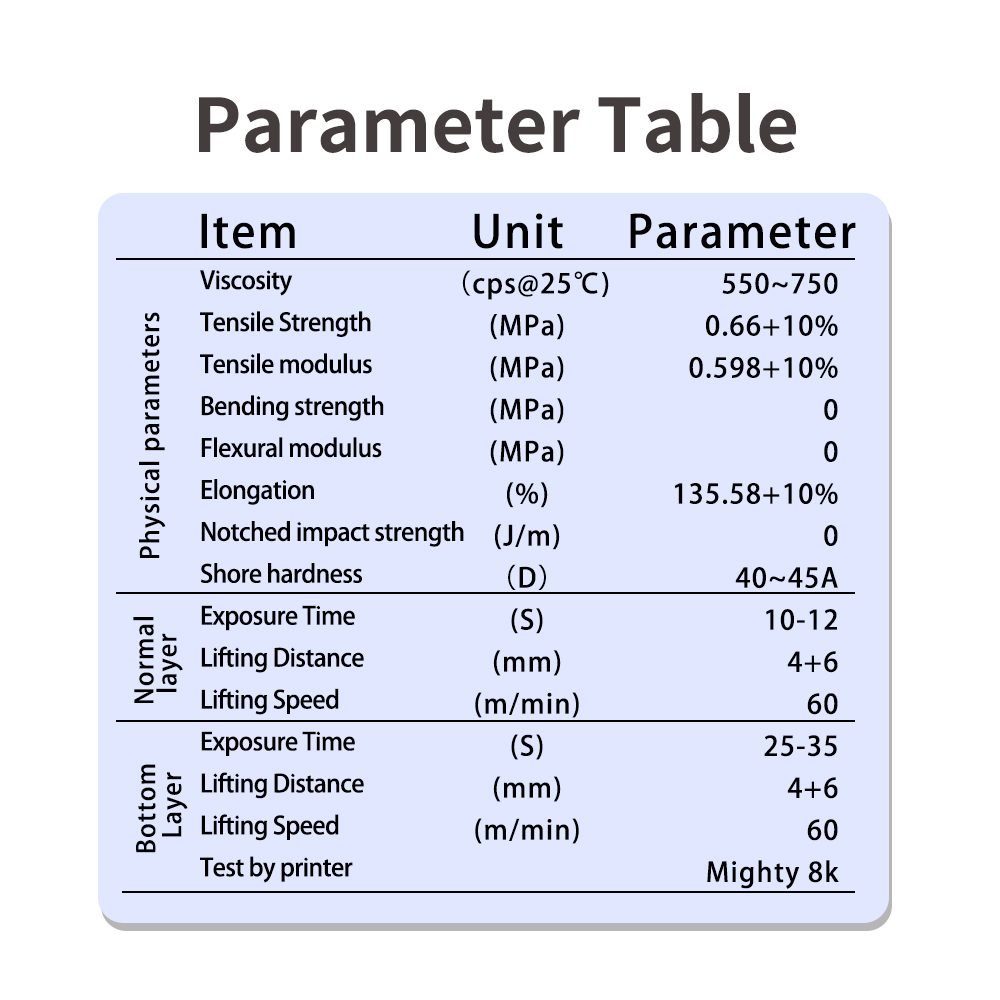 Antinsky Elastic Resin is a high-performance specialty resin material. With a hardness range of 40-45A, it boasts excellent elasticity.